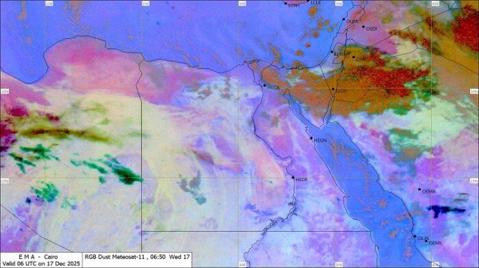 أشارت الأرصاد إلى أن الأمطار ستكون متوسطة إلى غزيرة على السواحل الشرقية وسيناء، كما ستنشط الرياح على أغلب الأنحاء.